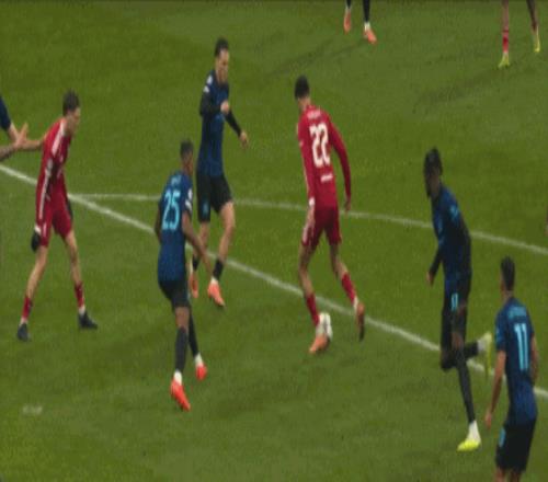 第31分钟,利物浦角球进攻,门前完成头球接力,埃基蒂克助攻科纳特头球破门,随后VAR阶段之后,主裁判示意埃基蒂克手球在先,进球无效,利物浦全队空欢喜一场。