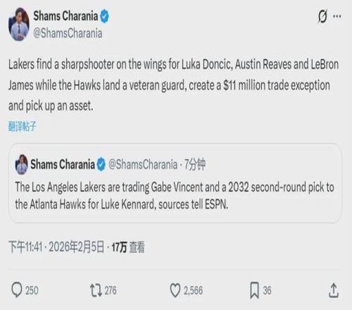 北京时间2月5日晚11点40分,据NBA名记Shams报道,湖人和老鹰达成一笔交易:湖人将文森特和2032年次轮签送至老鹰,2换1交易得到肯纳德。值得一提的是,这也是湖人本赛季第一笔交易!